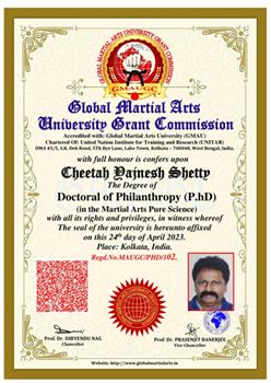 प्रसिद्ध मार्शल आर्ट गुरु चीता यज्ञेश शेट्टी ने ‘ग्लोबल मार्शल आर्ट्स यूनिवर्सिटी ग्रांट कमीशन’ से पीएचडी की डिग्री प्राप्त की