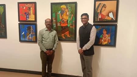 Vinay blends realism with beautification, often depicting static, emotionally distant figures, with decorative elements floating around as if they are residues of memory or psyche. Virendra Chopde displays his skill in portraying beautiful, elegant, simplified forms highlighted with his distinct style.